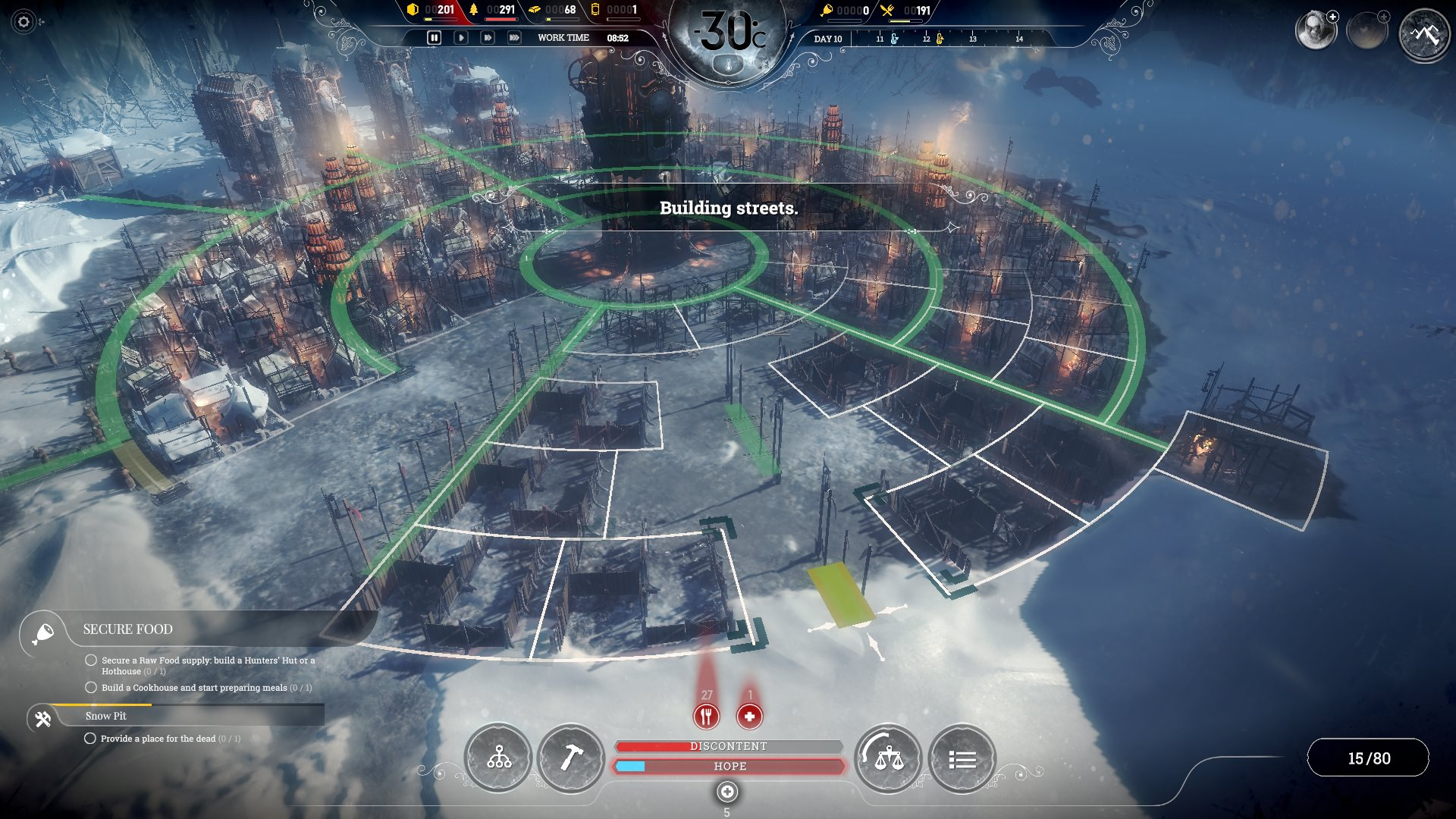 Place 2 houses on the first ring, build external roads for all 4 rings.