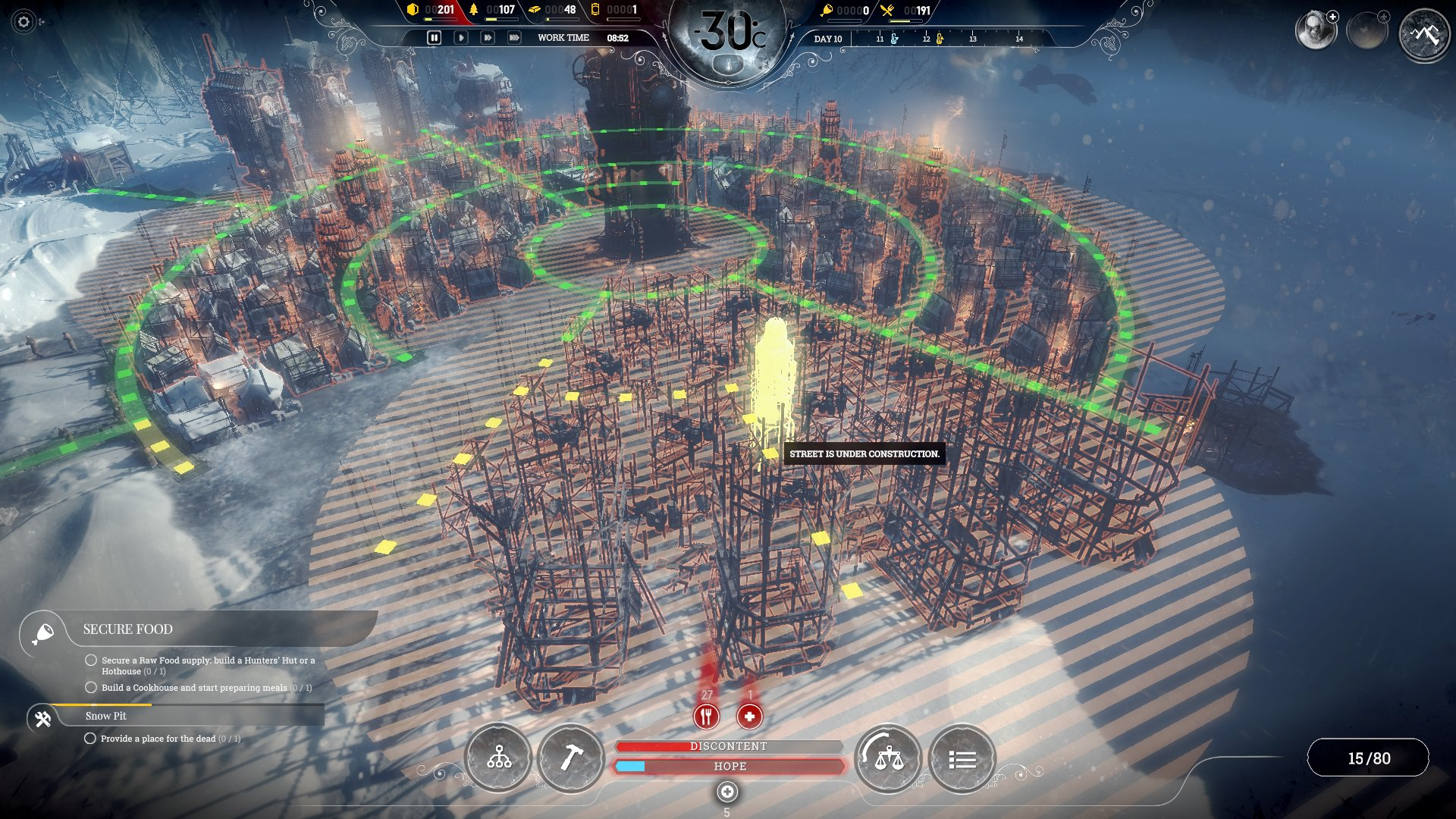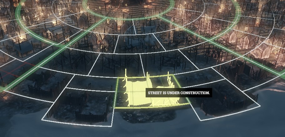 Place a Steam Hub between the 3rd and 4th ring. It will heat up all tents and workshops on 1st range setting.